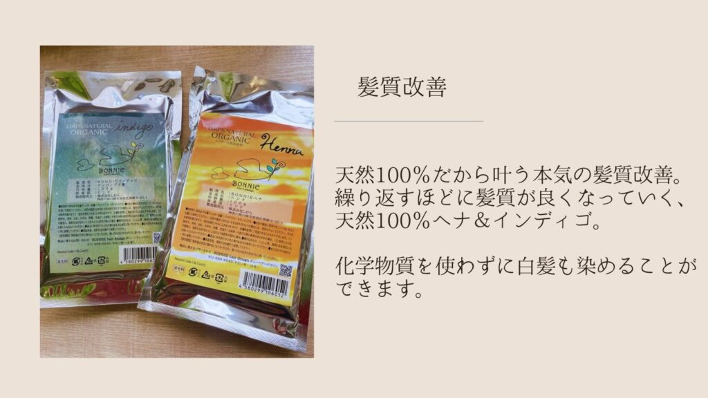 ヘアカラー後の痒みは、化学物質「ジアミン」が原因と考えられます。 最近では「ジアミン」によるジアミンアレルギーの方が増えています。「ジアミン」は日本では規制がなく、ファッション性が高まるため、美容室で使っている薬剤であっても使われているのが一般的です。 当店ではジアミンを使っていない「ノンジアミンカラー」のおしゃれ染め、白髪染めを扱っていますので、お客様に合う染め方がみつかると思います。 化学物質を使う染め方は、ジアミンが入っていなくても他の化学物質によって刺激やかゆみを感じる場合もあります。「天然100%ヘナ」もノンジアミンカラーのひとつです。何で染めたら良いのかわからないという方も、まずはご相談ください。