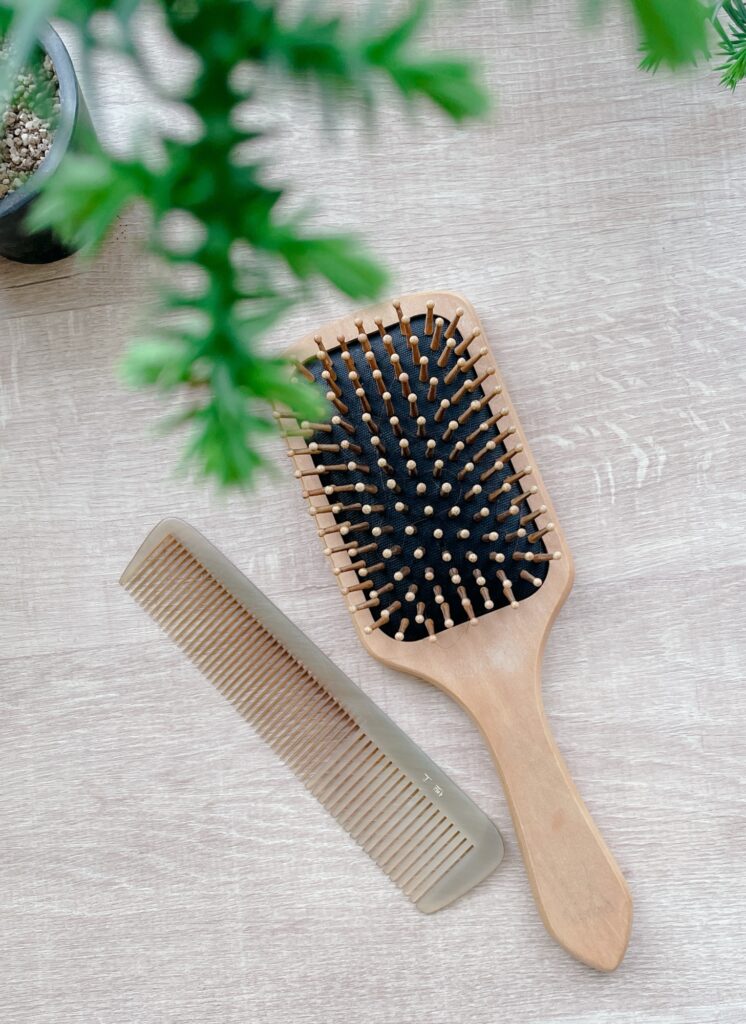 カットする際は、水牛の角でできているコーム、乾いた髪には椿のブラシを使っていますが、プラスチックよりも静電気が断然起きずらいです。